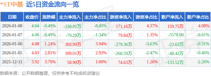 1月8日的资金流向数据方面,从力资金净流出330。91万元,占总成交额8。45%,逛资资金净流入171。16万元,占总成交额4。37%,散户资金净流入159。75万元,占总成交额4。08%。