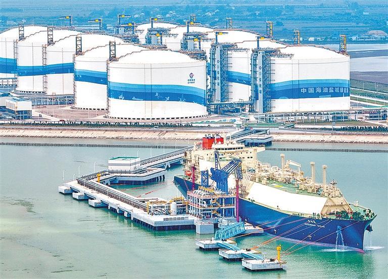 位于江苏省盐城市的中国海油“绿能港”项目。截至目前,项目已累计接卸784万吨液化天然气,为长三角及周边地域供应天然气超98亿立方米。郜野乔摄(中经视觉)。